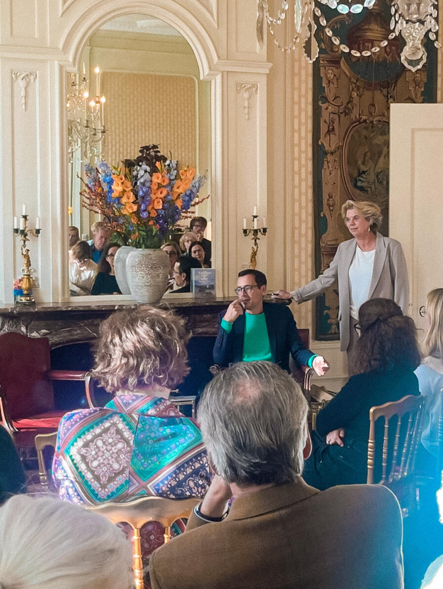 Soirée de Lancement – Deze avond werd de Salon Littéraire feestelijk gelanceerd. De prachtige salon van Sjoukje Gerritse was tot de laatste vierkante meter gevuld met enthousiaste leden en genodigden. M. François Alabrune, de Franse ambassadeur in Nederland sprak gloedvol over het belang van cultuur en literatuur in roerige tijden en Rémi Baille, auteur van de debuutroman Les enfants de la crique, bracht een ode aan de Méditerranée en aan het schrijverschap. De auteur signeerde zijn boek en nam ruim de tijd om met iedereen te spreken. Onder het genot van een glas ontmoette iedereen elkaar, nieuwe leden meldden zich; een nieuwe ‘communauté’ van mensen met hart voor de Franse cultuur en literatuur werd geboren.2 november 2024