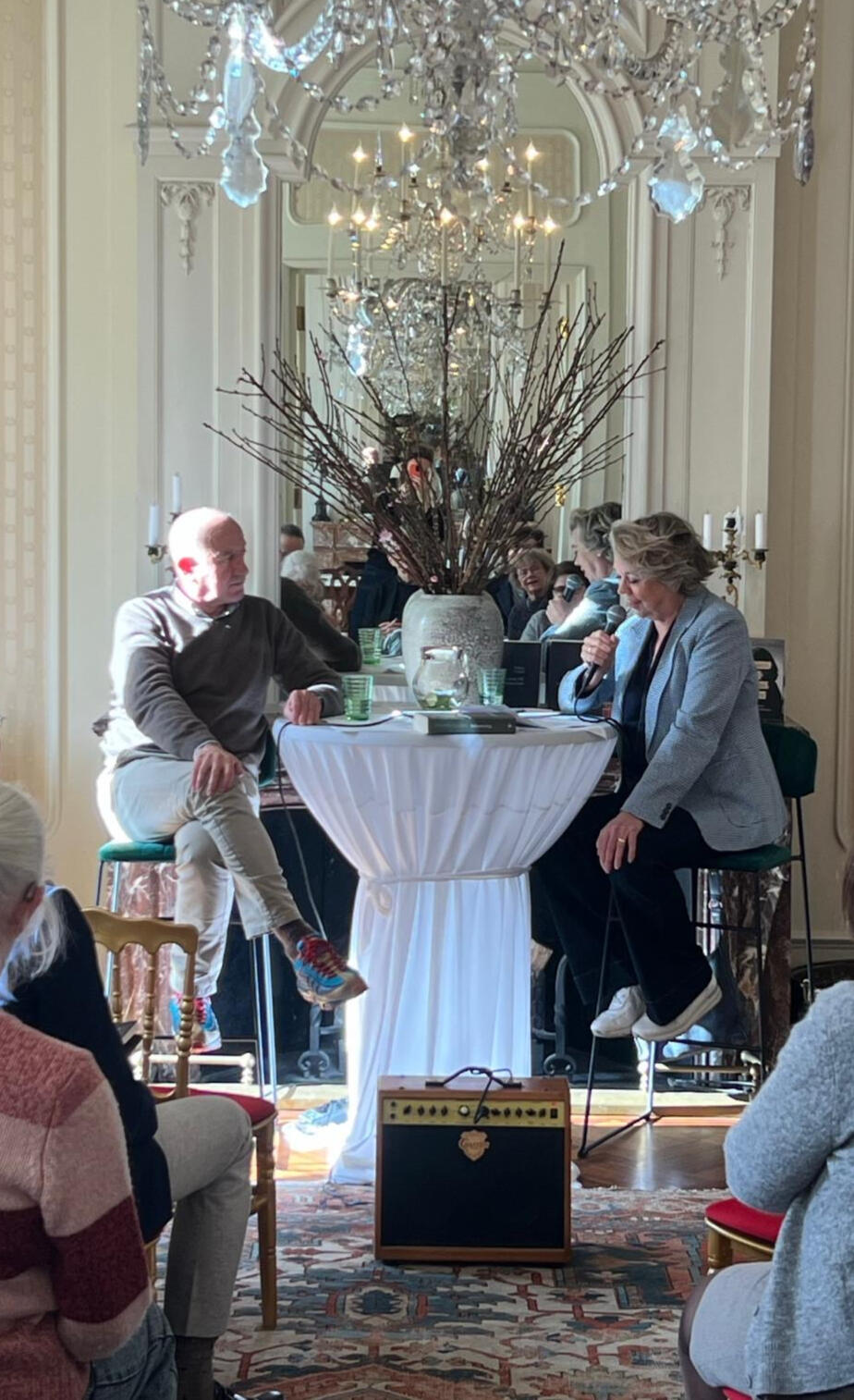 Avant-première, ontmoeting met Jean-Baptiste Andrea, winnaar van de prix Goncourt 2023 voor zijn roman “Veiller sur elle” (verschenen bij L’Iconoclaste). De Salon Littéraire kreeg een vliegende start met de komst van de Goncourtwinnaar die een paar uur in Amsterdam was en door Margot Dijkgraaf werd geïnterviewd over zijn bekroonde roman. Uitgeverij Oevers gaf acte de présence met de Nederlandse vertaling Waak over haar, vertaald door Martine Woudt.